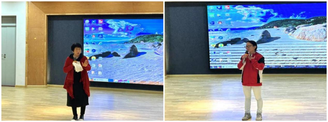 随后,老师们进行了精彩点评。邓鸿丹对三个活动中体现出来的“浸润式教学”理念给予肯定,并对同学们的专业实践提出了宝贵建议。李红从备课、说课、上课到反思四个环节展开讲解,希望同学们加强专业功底和教育实践能力的锻炼。