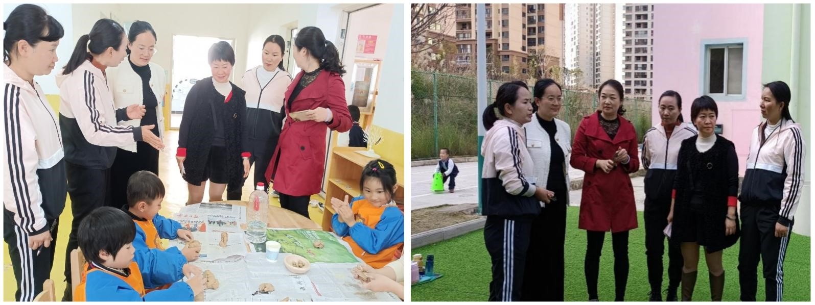 随后,董雯和曹鑫莉实地查看了园所环境,观摩了幼儿区域活动、户外体能大循环等,与教师和幼儿进行深入交流,全方位了解幼儿的发展情况、教师的专业素养,还与幼儿进行了互动。观摩结束后,老师们对幼儿园的不足提出了建设建议。