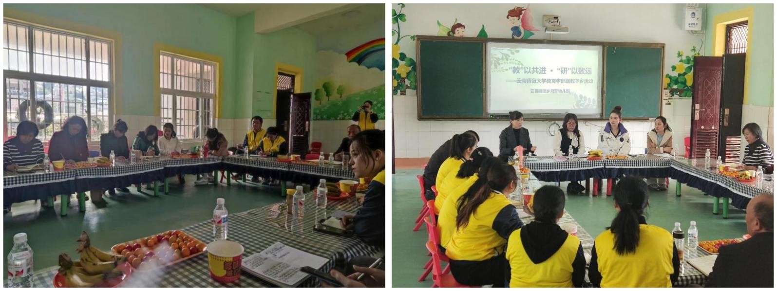 12月14日上午,教育学部曹鑫莉老师、基础教育集团董雯老师组成送教小组,前往砚山县维摩乡中心幼儿园开展工作。当天,工作小组同维摩乡中心小学党委书记罗应兵、园长王小红、学员李云佳等老师开展座谈,了解幼儿园现状及发展情况,并就如何加强安全、服务活动等方面提出建议。