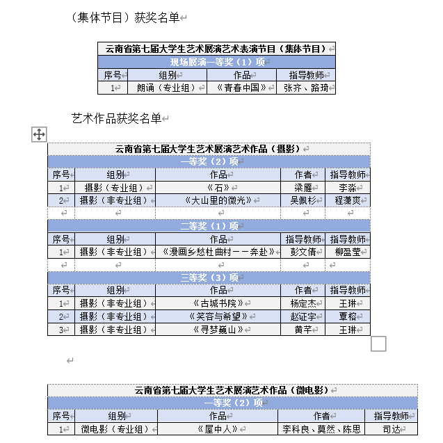 近日,云南省教育厅公布第七届大学生艺术展演活动获奖名单,365英国上市官网传媒学院22部作品获奖,其中一等奖5项,二等奖6项,三等奖11项,获奖作品涉及朗诵、摄影、微电影、艺术工作坊等多个组别。