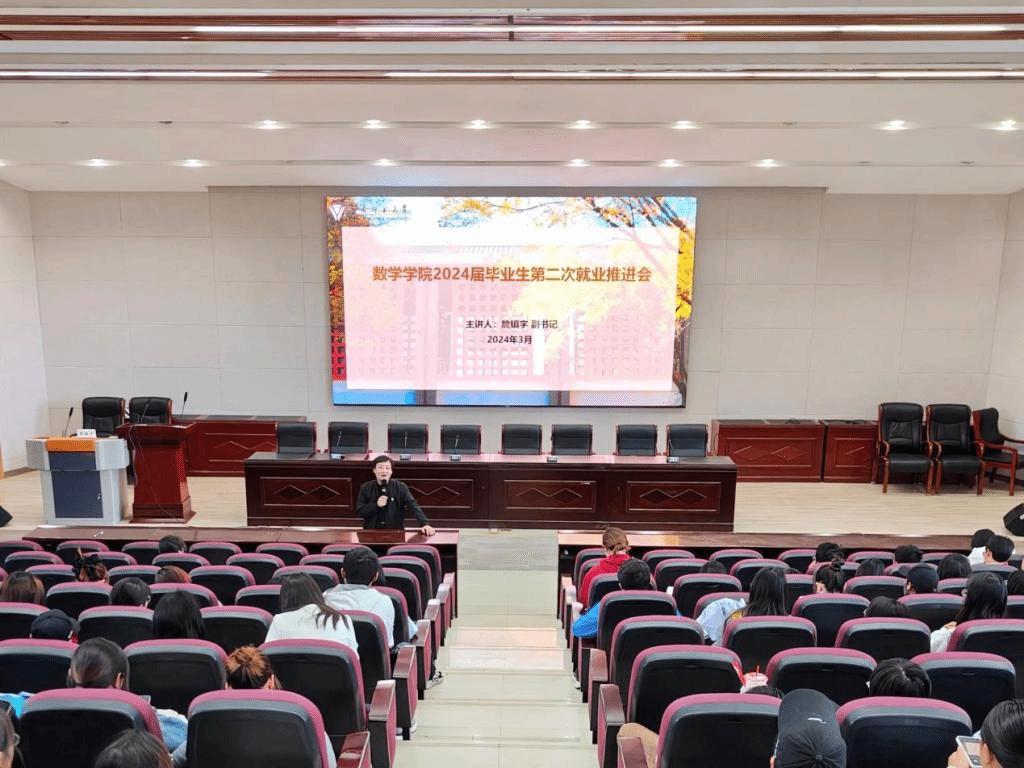 为全面做好2024年毕业生促就业工作,进一步提升数学学院学生就业竞争力,3月7日,数学学院在同析楼报告厅组织召开2024届毕业生第二次就业推进会。数学学院党委副书记詹镇宇、毕业班班主任、辅导员,以及2020级全体学生参加会议。