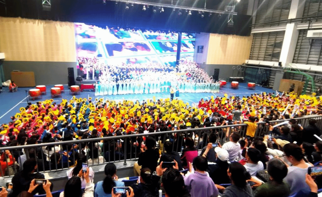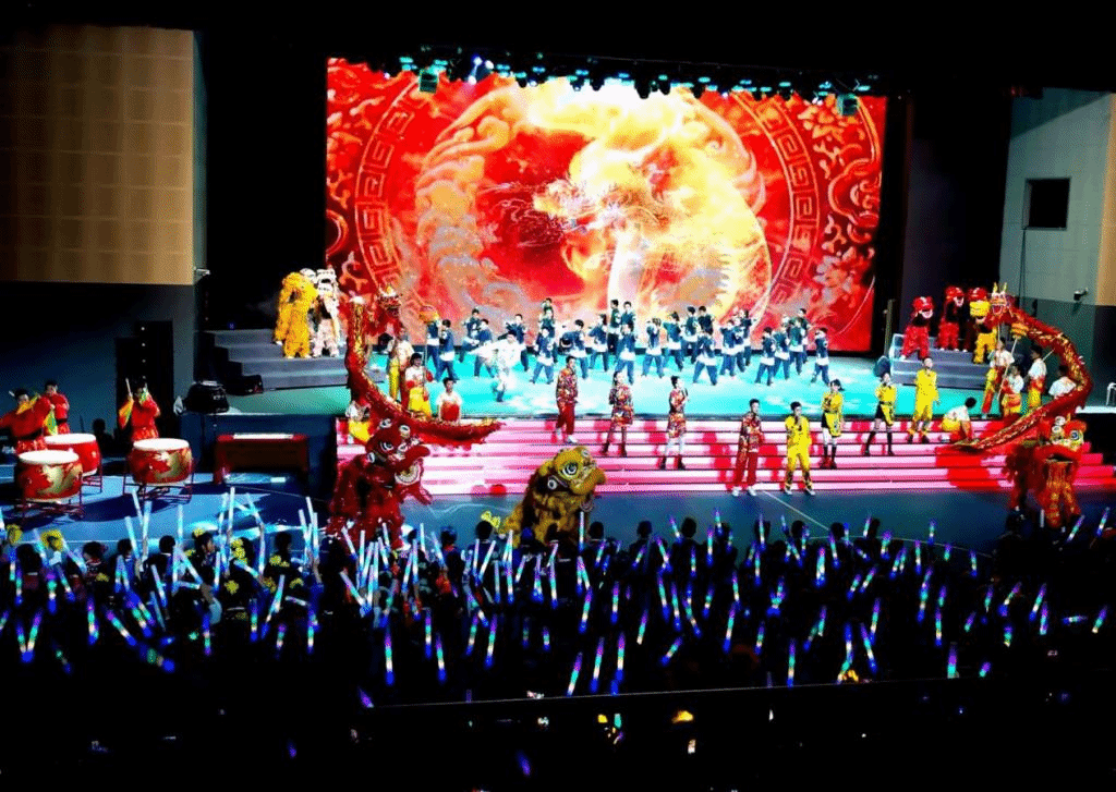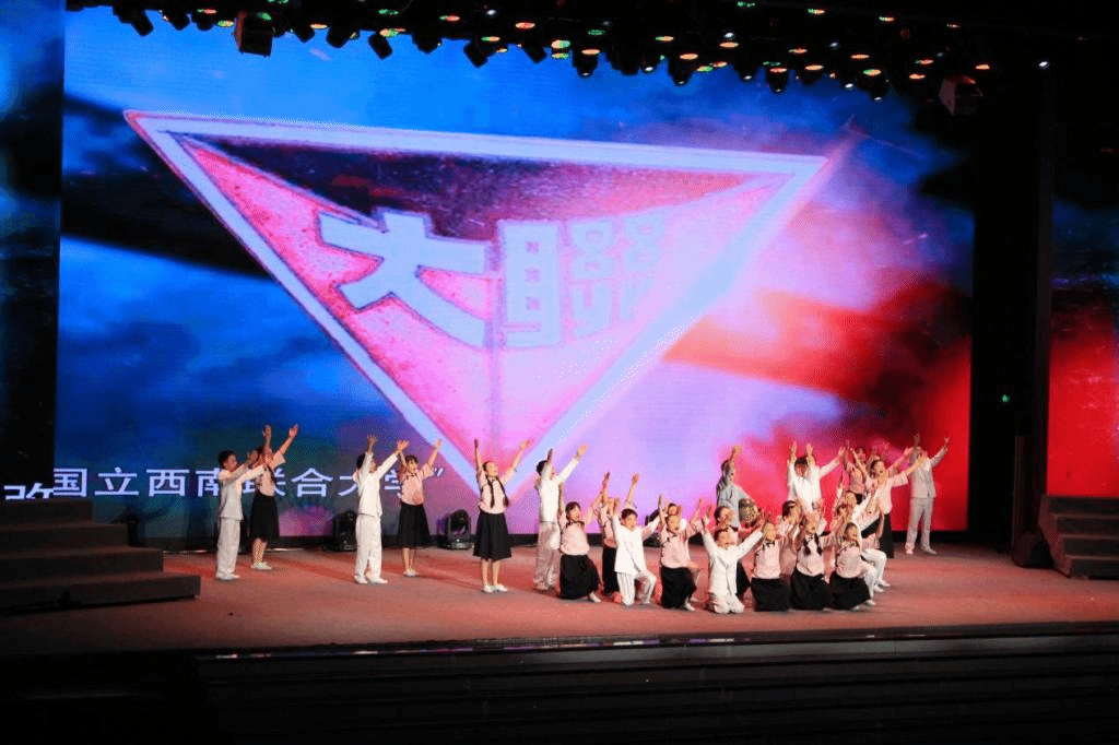 随着学校民乐团师生热情奔放的《喜洋洋》等曲目,表演拉开序幕。节目以时光为线,从“峥嵘岁月”,到“奔腾年代”,再到“追梦未来”,寻着西南联大红色基因,一路追忆,向同学、家长们展示了中国人靠着坚定的信仰从无到有、从富到强的伟大征程,引导同学们扛起共产主义接班人的责任与担当。