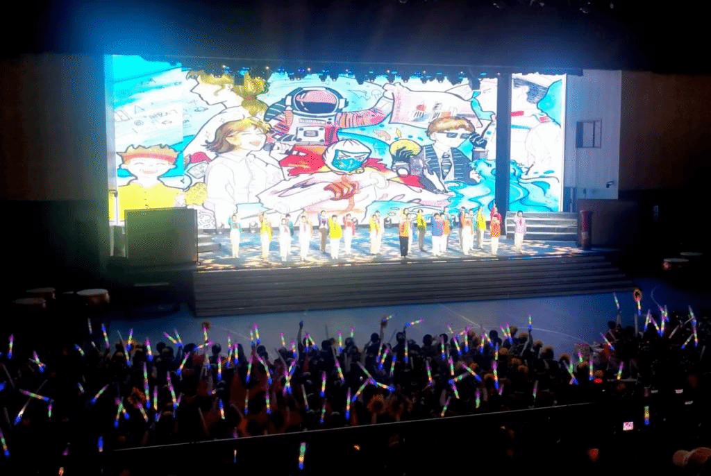 鼓点铿锵有力,舞步光影流转,歌声清澈悠扬,朗诵感人肺腑,武术意气风发,英语发音标准,无人机操控娴熟……节目内容丰富多彩,有红色文化根脉的传承,有“我们不一样 我们都很好”的自我认同,有少年儿童蓬勃朝气的展现,有保护环境展望未来的呼唤,还有对六年时光里所有身边人的感恩……台上三分钟说不尽六年的培养之情,台下六年功练就的是孩子们独一无二的“不一样”。