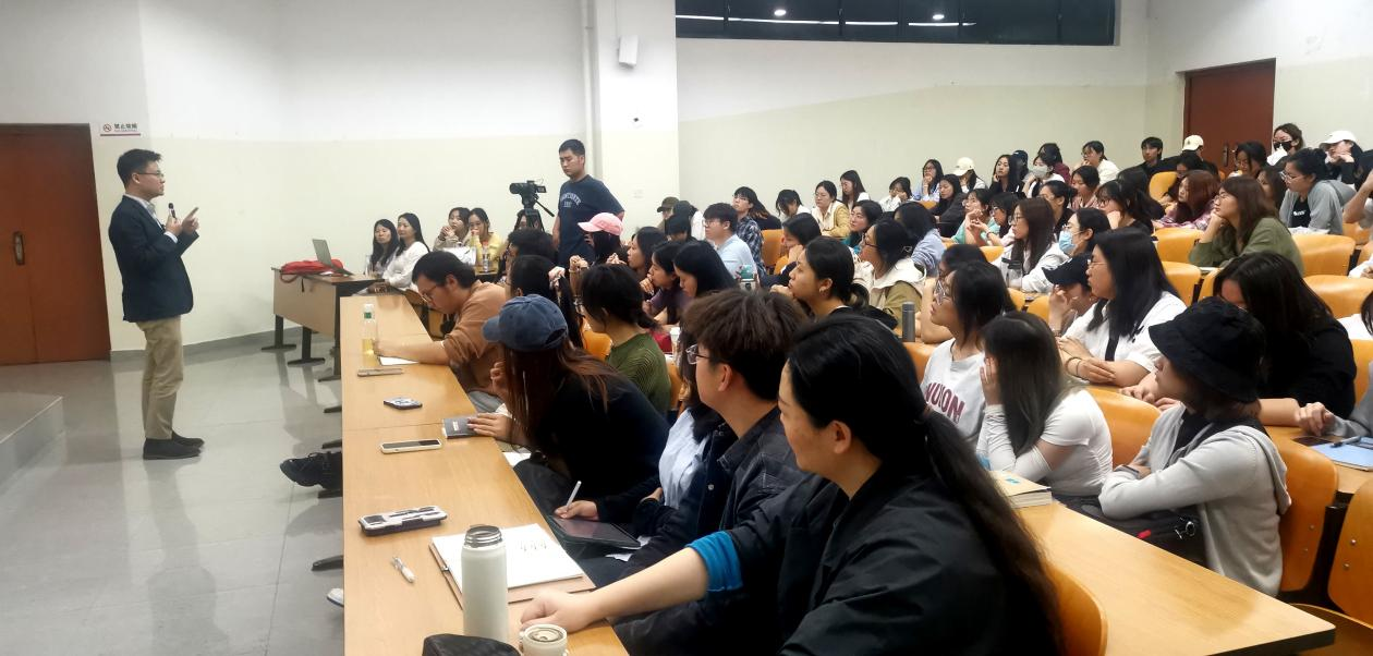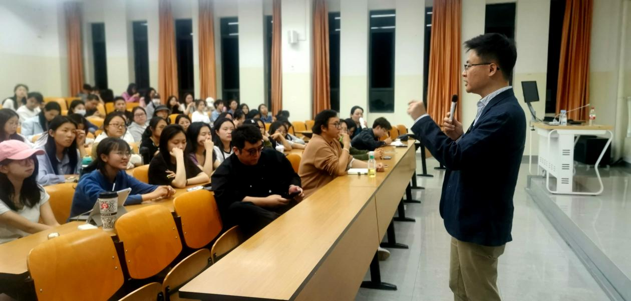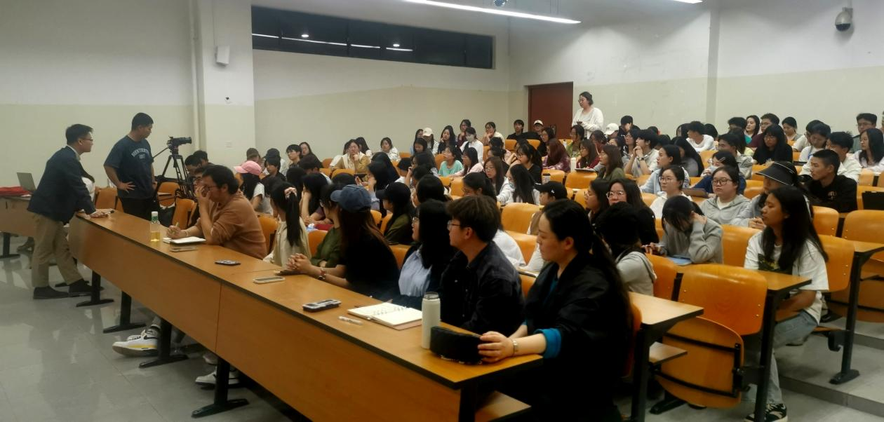董浩珉以真挚的情感向参会师生分享了自己的创作经验,提出了七个愿景与师生共勉。他从具体作品的实践角度出发,指导师生如何在画面感和故事性上进行深入创作。他以最近创作的热播作品《美好的时光》纪录片为例,讲述叙事既要在文本上做到“起承转合”,又要在影像上做好故事的画面感。他说:“《美好的时光》是一部有关中老关系的片子。这是两国之间的一次活动,我们希望用一种更温暖的角度去讲述好这个属于‘一带一路’的故事”。讲座尾声,董浩珉与在场师生进行了互动交流,耐心细致回答了学生们提出的问题,为大家解答疑惑。