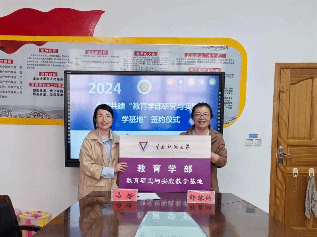 双方就教育实习基地相关事项深入沟通交流并达成一致,签署了合作协议并授牌。