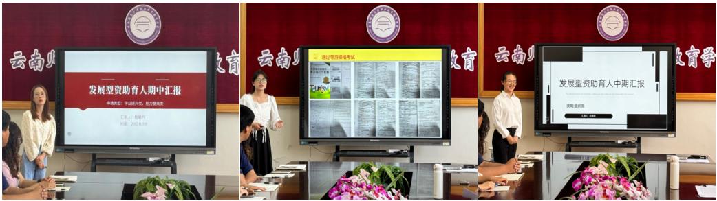 座谈会上,2020级应用化学专业程联丹、2022级旅游管理专业黄婷、2023级小学教育专业郑惠黎分别作为学业提升类、能力提高类和美育浸润类项目申报代表就明确规划目标、项目实施过程、目前取得成效以及自身感想感悟同在场师生进行交流分享。