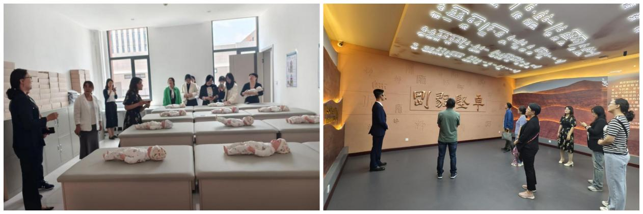内蒙古师范大学教育学院教育系系主任阿木古楞、学前教育系系主任周娟介绍了所在学院教育学、学前教育两个专业建设和人才培养情况。双方围绕专业建设和人才培养展开了深入探讨。会后,内蒙古师范大学教育学院调研组一行参观了学前大楼和校史馆。