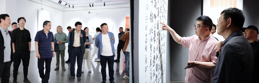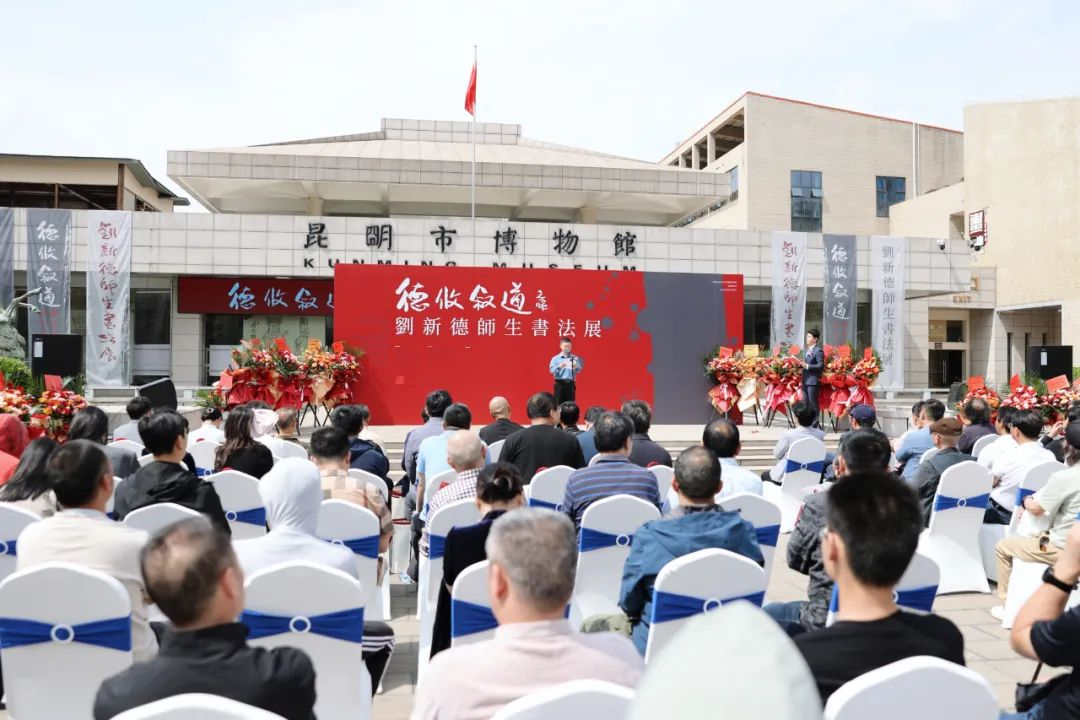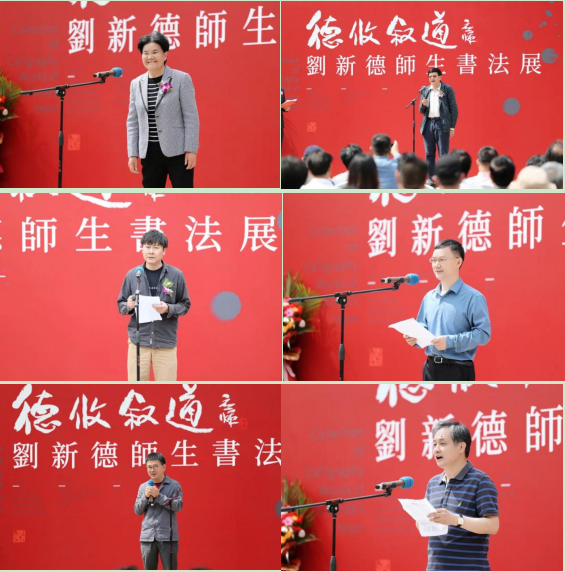 何应辉致辞,他认为刘新德教授在全国多次获奖,书写风格面貌独特,在教学中因材施教,呈现出了不同的书法面貌,为培养后学贡献了力量。美术学院院长戴杰表示,刘新德教授是学院引进的有突出成就的专家,在书法界有广泛的影响力,培养了一届又一届优秀的本科生、硕士生。在刘新德教授退休之际举办此次展览,既是对他几十年书法教育的一次重要总结,也是工作生涯的收官,期待展览圆满成功。中国书协理事、四川省书协副主席兼秘书长王道义表示,新德先生为人朴实低调、儒雅散淡,为艺取法乎上、潇洒隽永,他真诚希望继续同包括云贵川渝在内的各兄弟省市自治区书协、全国各高校和省内外书法单位等加强联系、优势互补、密切协作,共同创建协同育人、艺术学术交流机制,齐心协力推动区域书法事业健康发展。学生代表龚小斌回顾了自己的跟随刘新德先生的学习经历。他表示,有幸成为刘老师第一批学生,经老师指导,作品风貌很快有了改变。龚小斌十分感谢刘老师把自己带进了书法学习的殿堂,期待学弟学妹们继续努力,创作出更加精湛的作品。刘新德感谢到场参加开幕式的所有嘉宾和本次展览的主办单位、承办单位以及所有为这次展览默默付出的组织者。他表示,自己在书法上所取得的每一个成绩,都离不开老师们的悉心教导和朋友们的无私帮助。真诚期待今后在大家的指教帮助下,补短扬长,共同进步。