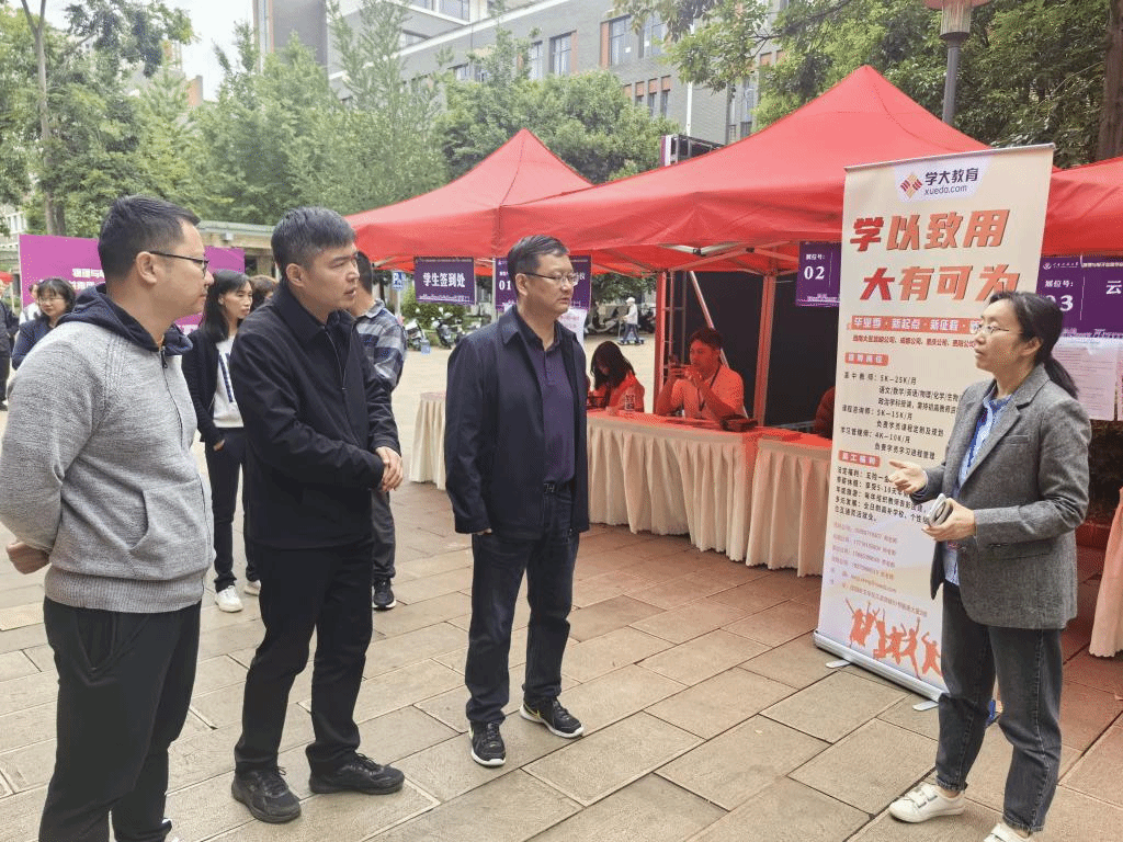 双选会举办期间,副校长甘健侯、就业处副处长李映松到现场指导各项工作,并于用人单位进行沟通交流,推荐学校毕业生。