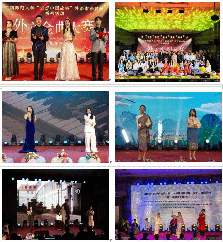 此次活动由校团委主办,外国语学院、云南华文学院承办。活动由外文金曲大赛和外文戏剧大赛组成,来自各学院500余名选手参加了比赛,学校学生处、校团委、外国语学院、云南华文学院相关领导和老师出席比赛并担任评委。