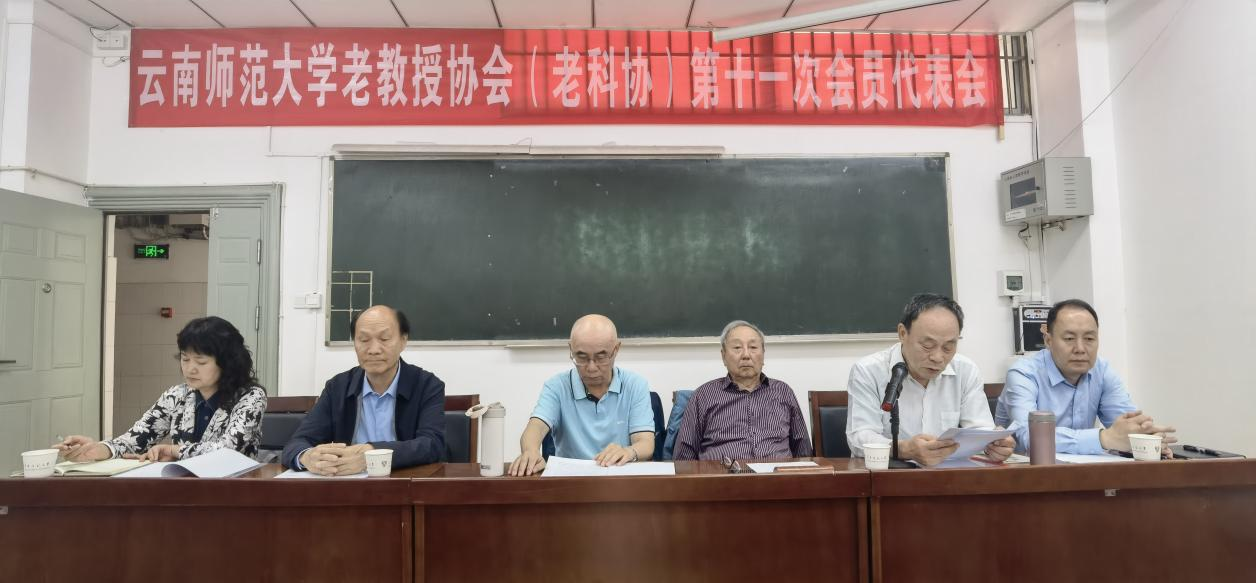 6月12日下午,我校老教授协会(老科协)第十一次会员代表会议在一二一西南联大校区明睿楼召开。校老教授协会(老科协)前两届会长杨文泽、原一川,55名会员代表,离退休教职工党委书记王琼玲、离退休工作处处长郭培元等参加了会议。会议由老教授协会(老科协)副会长兼秘书长李保才主持。