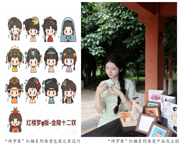 2022级汉语言文学专业李馨同学作为团队主要负责人,将《中国古代文学》课程理论学习成果转化为特色文旅产品——“琦罗香”红楼系列中华传统文化特色香膏。该产品依托云南植物资源天然优势,以云南山茶花、杜鹃花、报春花、兰花、云南樱花、凤仙花、绿绒蒿、木兰花、百合花、点地梅等为萃取原料,以《红楼梦》金陵十二钗人物形象为灵感来源,设计香膏产品包装,并赋予香膏《红楼梦》文化内涵。目前,“琦罗香”红楼系列中华传统文化特色香膏,已获发明专利号,并在大理古城沐眠民宿、大理古城美好时光客栈和大理市洱海生态廊道风云客栈正式推出。作为《中国古代文学课程》学习成果,“琦罗香”红楼系列香膏,以具有“国潮风”韵味的香膏产品为载体进行文化推广,既较好地传播了中华优秀传统文化,又在彰显云南地域文化特色的“文旅”结合中,为云南乡村振兴提供了服务支撑。