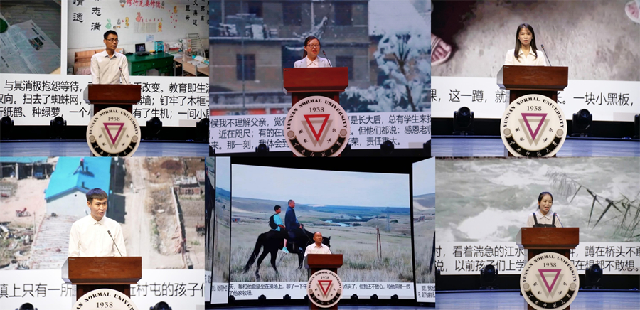 河南封丘县潘店镇大辛庄小学教师任明杰,湖北长阳县贺家坪镇贺家坪小学教师覃瑶,江西新干县沂江乡中心小学教师邹明月,黑龙江安达市任民镇中心学校教师李平,新疆维吾尔自治区昭苏县教育局党委书记、副局长许彦云,云南贡山独龙族怒族自治县独龙江乡中心学校教师赵浩兰讲述了他们在乡村的任教经历以及难忘的点滴。
