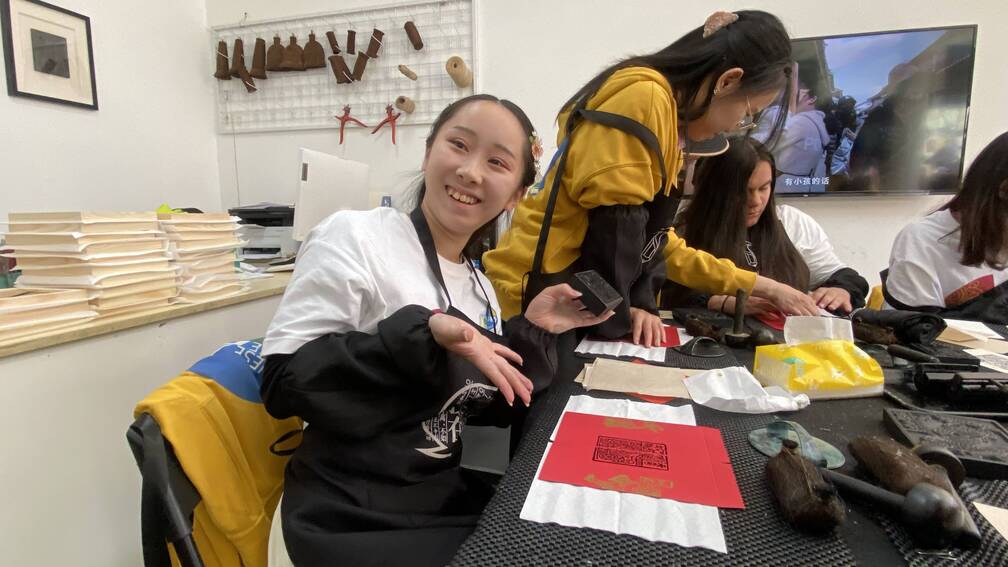 “老师告诉我,我拓印的图案是天喜之神,他是中国一位代表幸运的神,掌管着嫁娶之事,能保佑家庭合睦。我很喜欢这个寓意!”来自日本赛区的千田实幸很喜欢甲马,她觉得甲马上的神明很特别,他们不像传统认知中的神明那么高高在上、超凡脱俗,反而更加亲切朴实。“还有小伙伴拓印出了睡觉神、哭神、路神,这太有趣了,希望他们保佑我!”