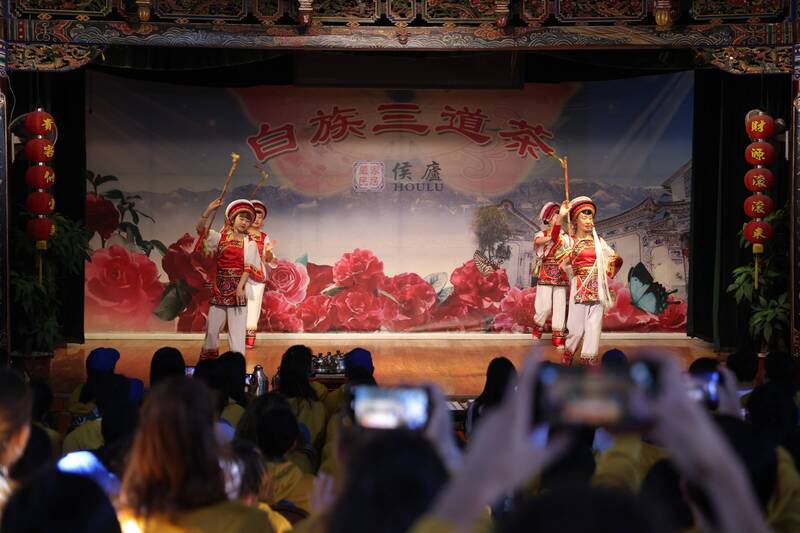 “一苦、二甜、三回味”的白族三道茶是白族民间礼待宾客的一种重要传统。今天,热情的白族人民在喜洲古镇,以这一享誉中外的茶俗,开启了“汉语桥”选手们的非遗之旅。