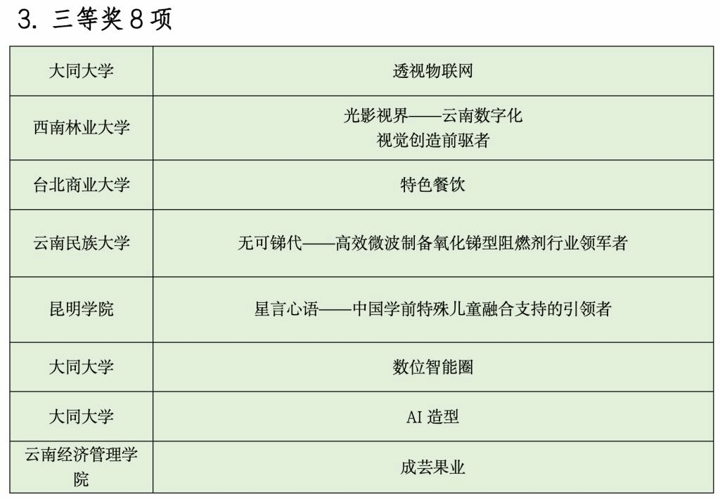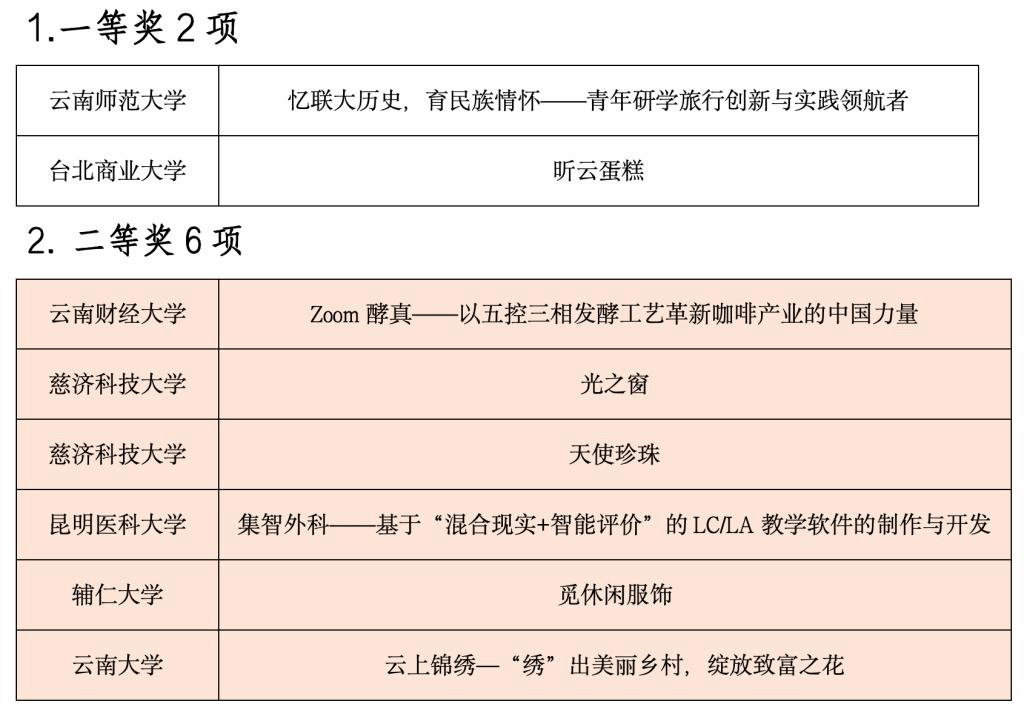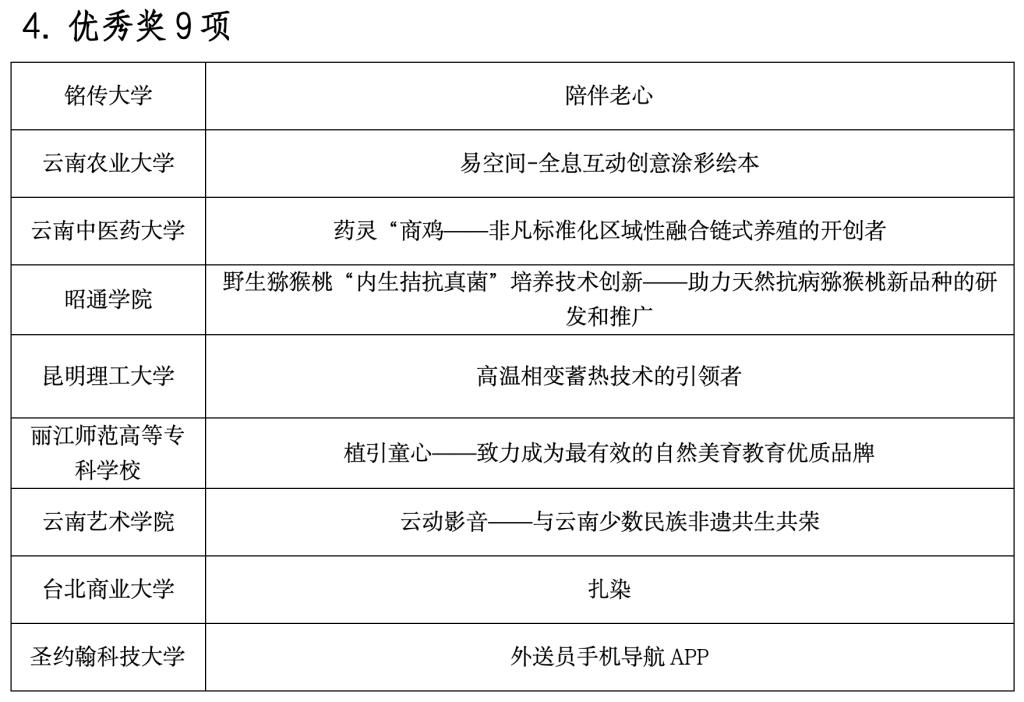 今年的邀请赛是历年来人数最多、规模最大的一次。来自365英国上市官网、铭传大学、辅仁大学、云南大学、昆明理工大学、慈济科技大学等20所云台高校学生组成的25支队伍,聚焦教育、文化、信息、现代物流、高原特色现代农业、养殖业食品与消费品制造等重点领域展开激烈角逐,评选出一等奖2项、二等奖6项、三等奖8项、优秀奖9项,以及最佳人气、最佳创意、优秀组织、优秀指导教师等奖项。