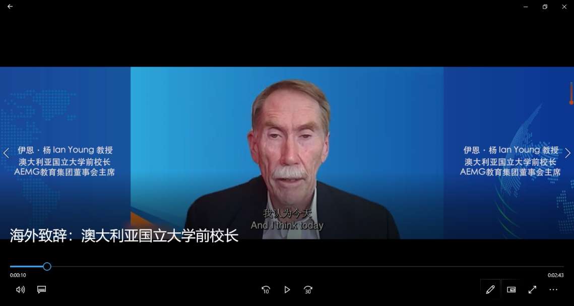 澳大利亚国立大学前校长伊恩·杨教授,爱尔兰国家学院吉纳·奎因教授,泰国清迈大学校长彭拉•习班迪蒙坤教授在线上进行了视频致辞。