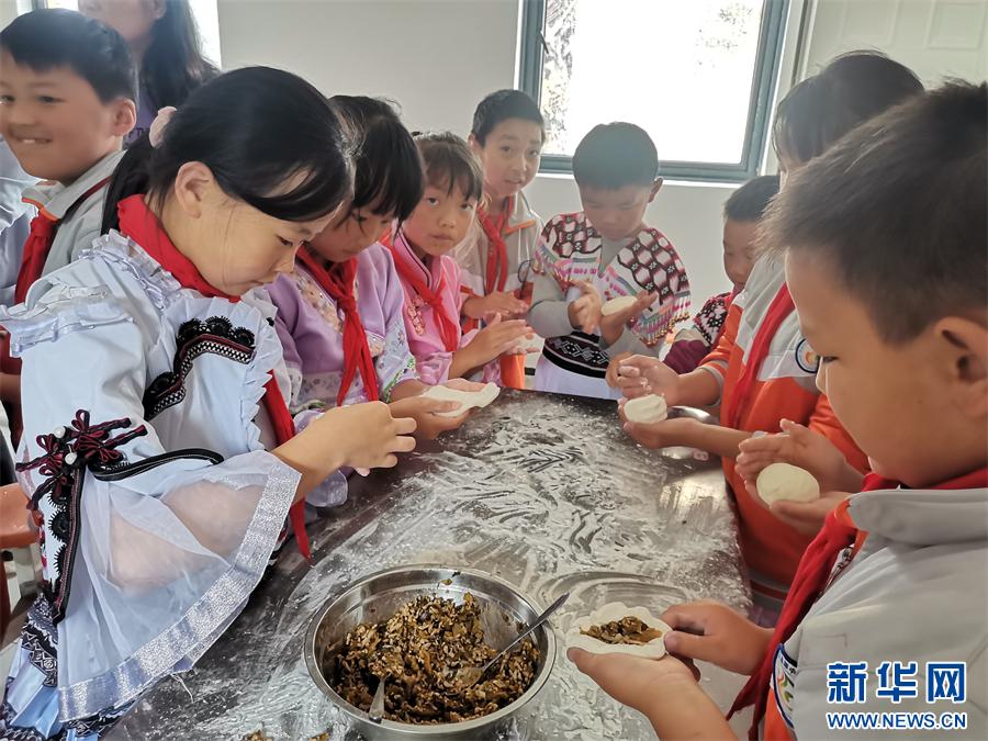 弥勒市租舍明德小学的学生们正在打饭(资料图)。新华网发(弥勒市租舍明德小学 供图)