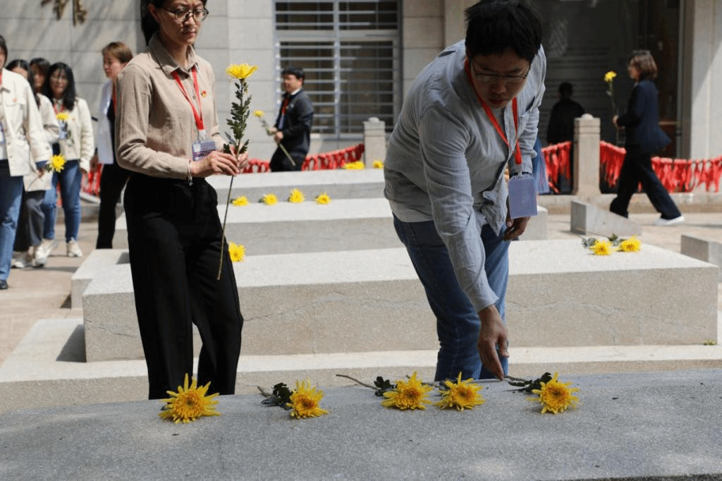 全体学员在“一二·一”运动四烈士墓前重温入党誓词,向烈士敬献鲜花,静诉悼念之情。