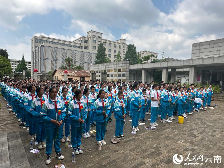 师生在烈士墓前悼念。人民网 曾智慧摄