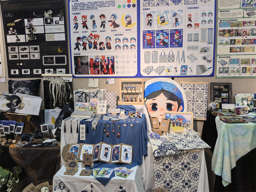 “瑶族文化是河口的特色,我想尽自己的一份力,让河口文化更广泛地传播出去。”《瑶锦织梦——创新农特产品品牌设计》的作者邹蜜说道。在瑶山乡实地考察之后,她立足于河口的村落文化,以蓝靛瑶族服饰纹样为对象,打造系列文化织品。